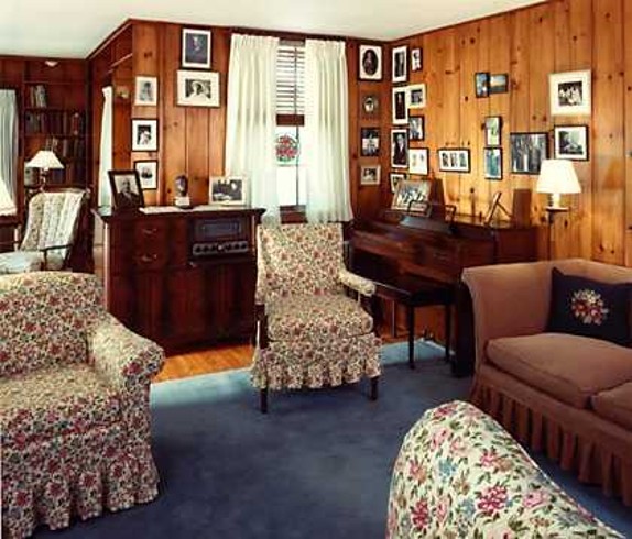 After a year, the trio (with another Democratic Party friend, Caroline O’Day, a former companion of Lillian Wald) had a second cottage constructed on the grounds for Val-kill Industries, an experimental business designed to provide work for local residents. A furniture factory trained artisans to create high-quality early American reproductions, but it folded ten years later under the financial pressures of the Depression. Nancy and Marion continued to occupy the Stone Cottage until 1947, and Eleanor had the factory remodeled into her own home (now “Val-kill Cottage”), the first and only house that belonged to her. After Franklin‘s death in 1945, Val-kill became Eleanor’s permanent residence. Now operated by the National Park Service and open to the public, Val-kill Cottage is a cozy, unpretentious house filled with comfortable furnishings (most made by Val-kill Industries) and decorated with photographs of Eleanor’s friends and family. You can almost see her in the warm pine-paneled rooms, relishing her independence and freedom from the Roosevelt family.